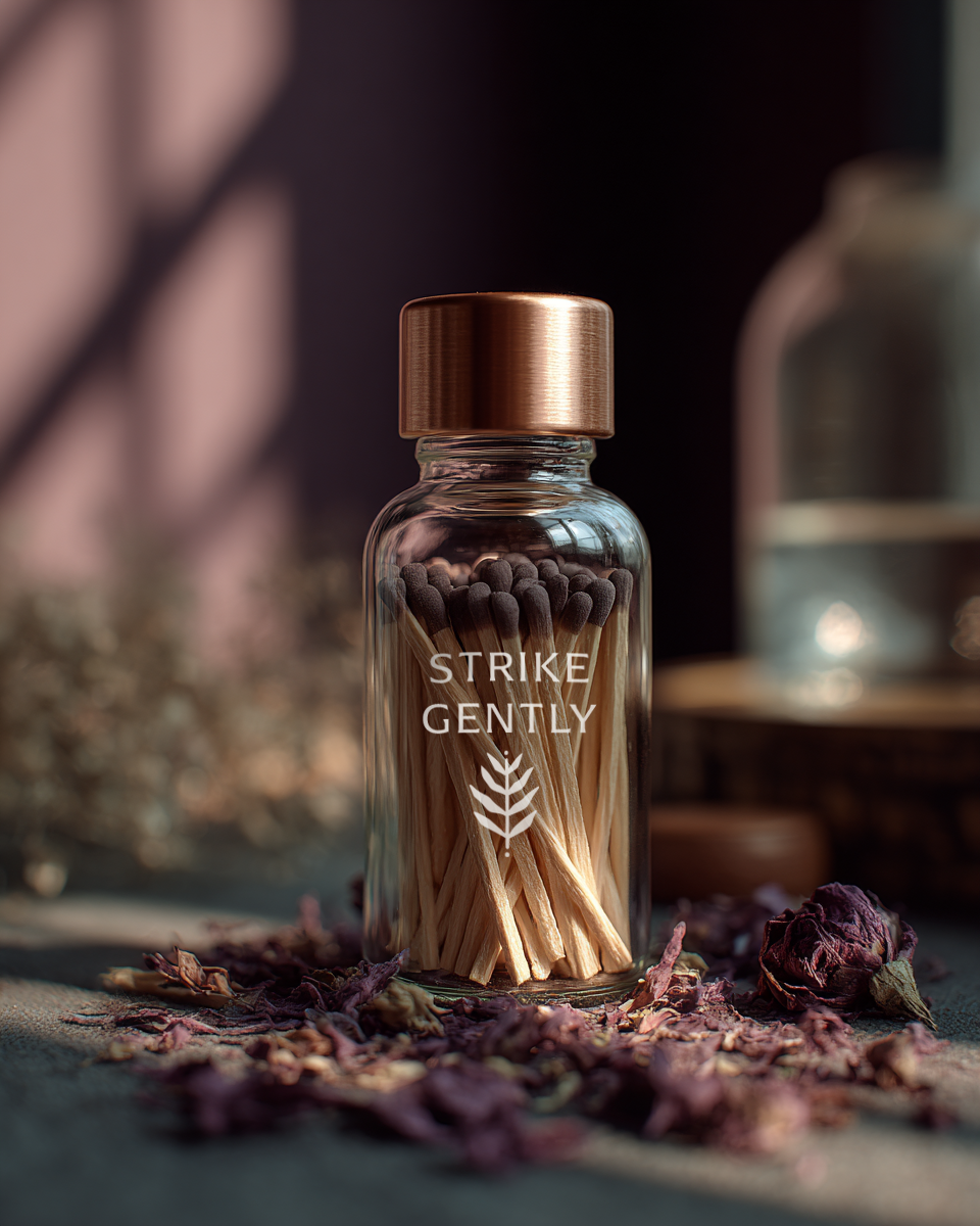 I approached Hush as a holistic identity system, designed to live across physical space, print, and small ritual objects. The work emphasized restraint, allowing typography, materiality, and spacing to set the tone, with botanical references used sparingly to support the atmosphere.