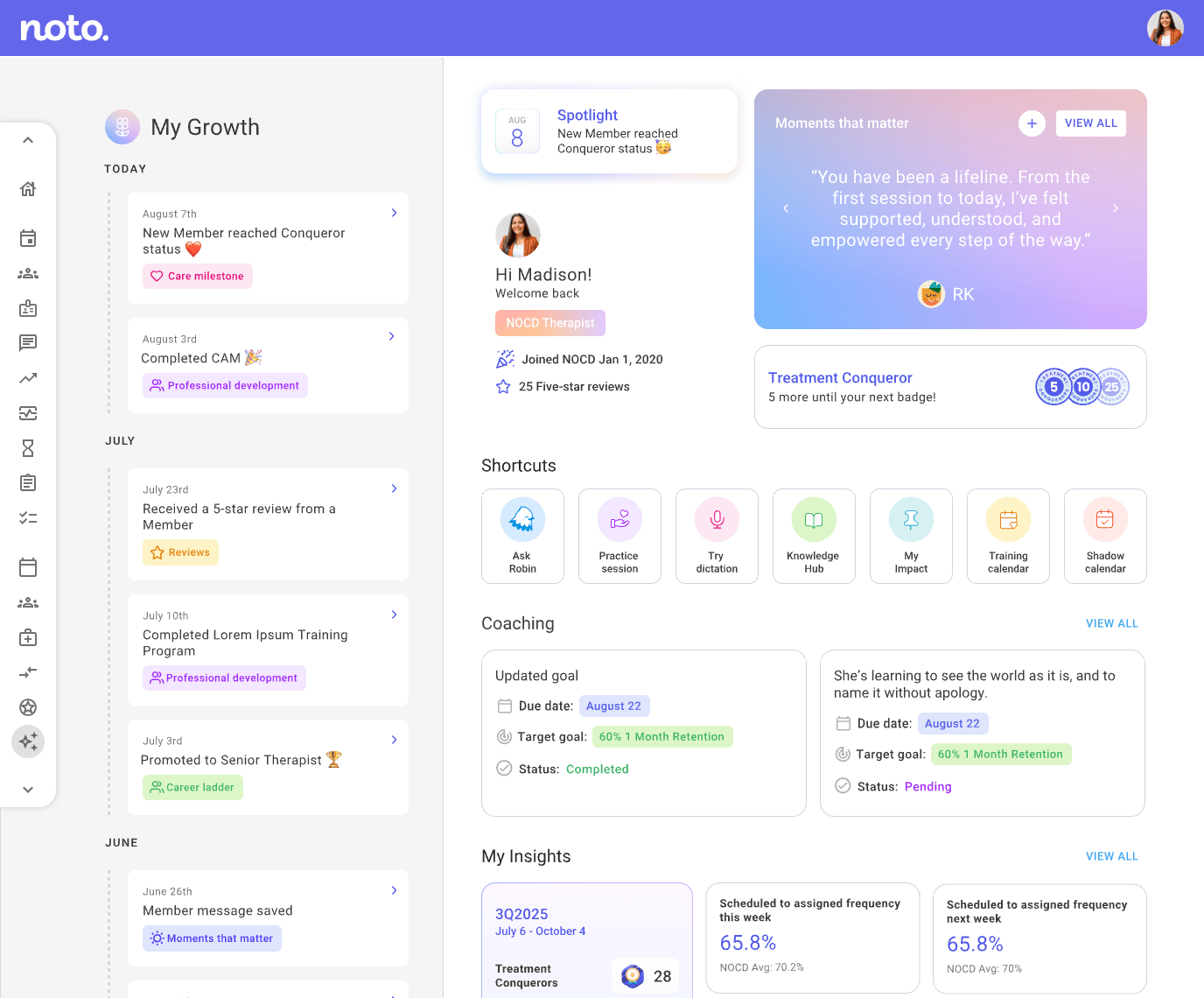 Therapists at NOCD were burning out on numbers. We rebuilt the dashboard to celebrate growth, connection, and the actual humans behind the data.